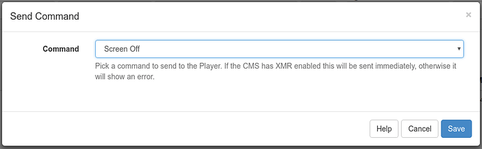 From the CMS, create and define Commands to turn the screen power On and Off.