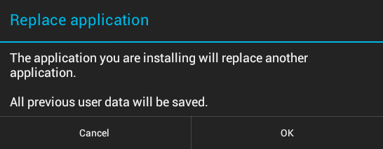 A box will appear informing you that the app you’re about to install will replace an existing application:
