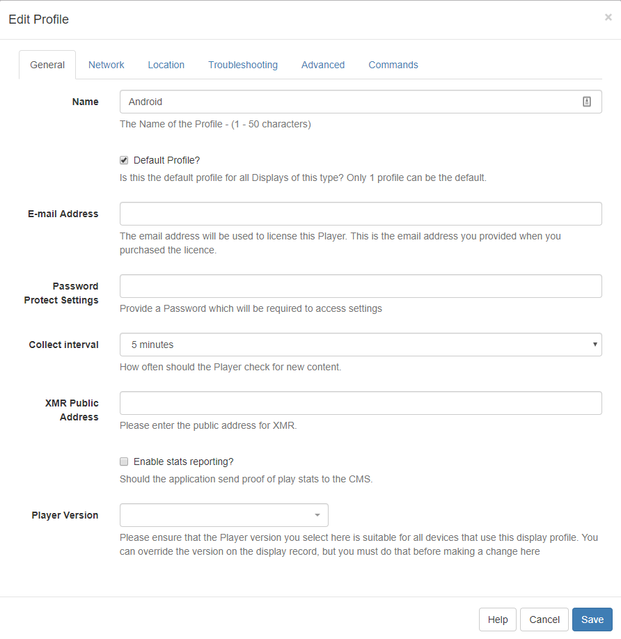 - Click on Edit and on the General tab use the Player Version drop-down menu and select the Player Version file and click Save.