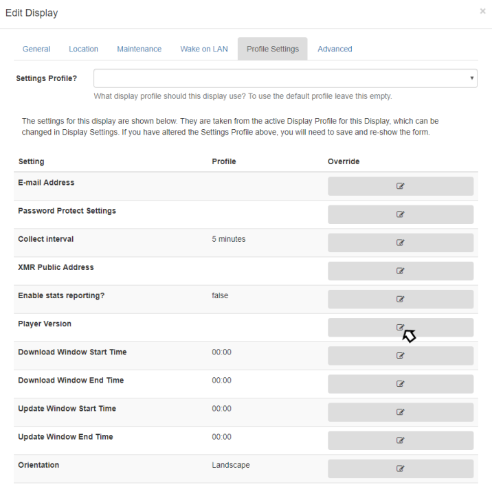 If you need to override the version assigned to a particular Player, that must be done before selecting a version in the Display Settings profile. Please see Player Version Override below.