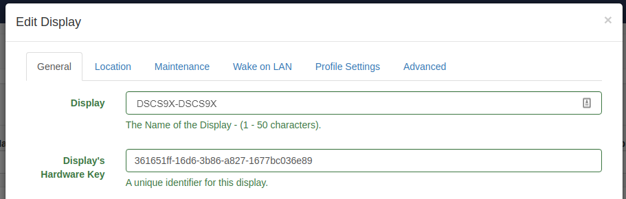 Once the Player has connected to the CMS, you’ll see a new Display appear in your CMS, likely called DSCS9X-unknown.