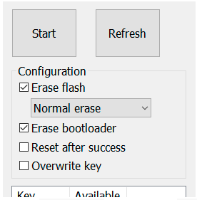 Ensure Erase flash mode is set to Normal erase as shown above. Under no circumstances use any other mode.