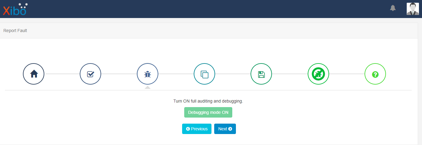 - Firstly, navigate to the Report Fault page under the Advanced section of the CMS menu and click on the Start button, click Next and Turn ON Debugging