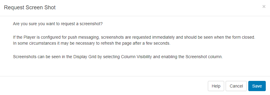 By requesting a screenshot from a Display with ‘auditing’ enabled, you are also requesting an additional log message that will contain status information to be sent.