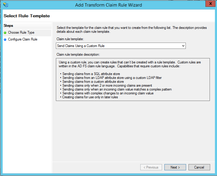 Add Relaying Party Trustto start the Wizard. -