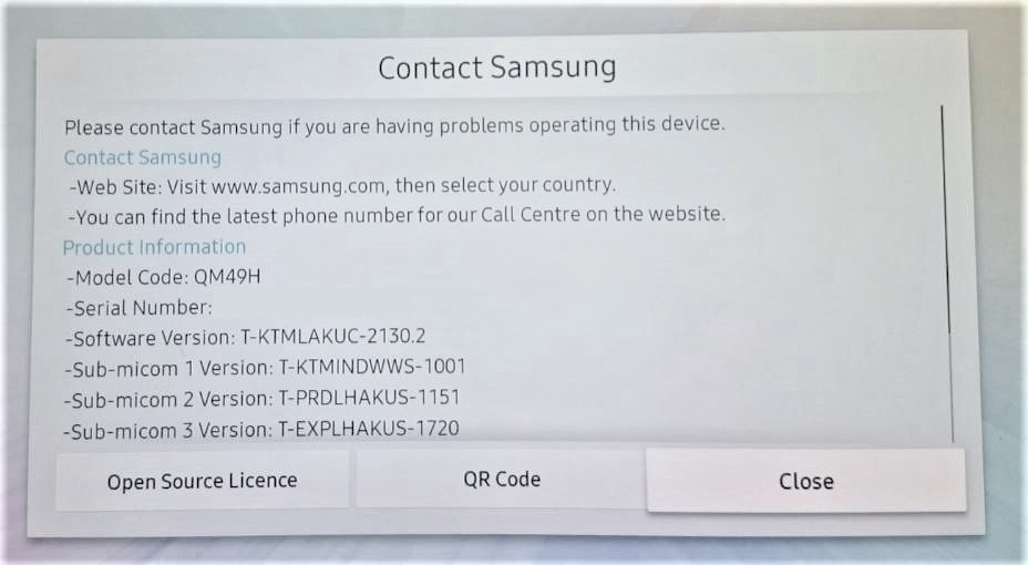 Contact Samsung. You will see the full firmware version details under theSoftware Versionentry on that page.
