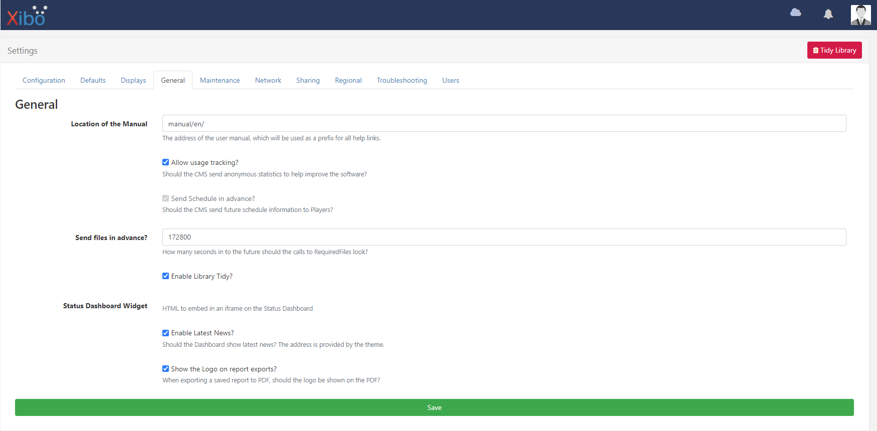 These are configured by your Xibo CMS administrator from the Settings page under the Administration section of the CMS main menu.