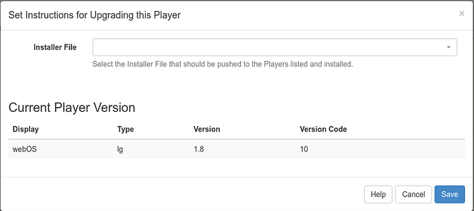 The recommended and easiest way to upgrade the Player version for Xibo for webOS is achieved via the CMS.