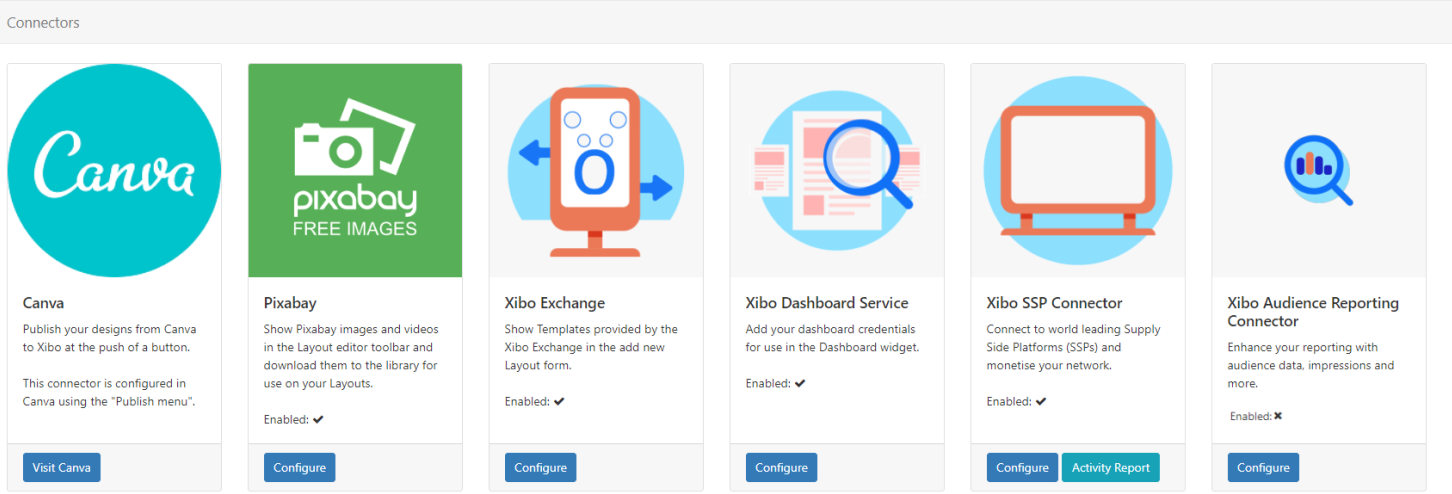 - Click on the Configure button for the Xibo Audience Reporting Connector.
