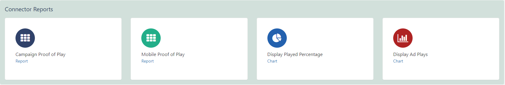 Scroll down the page to view available Connector Reports: