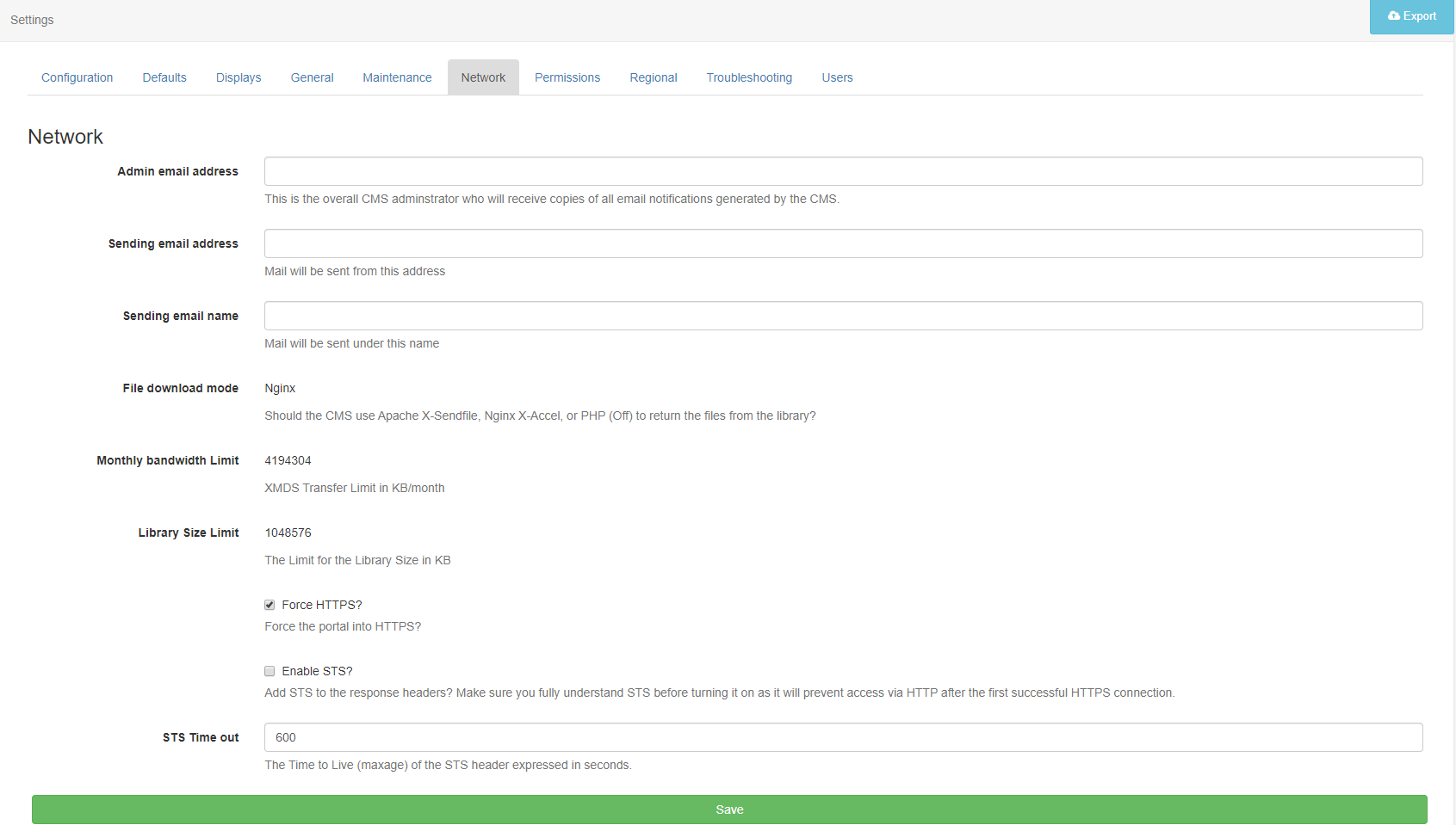 Xibo Cloud Hosting customers please note that some settings are pre-populated for you but are available for you to change, with others locked for editing.