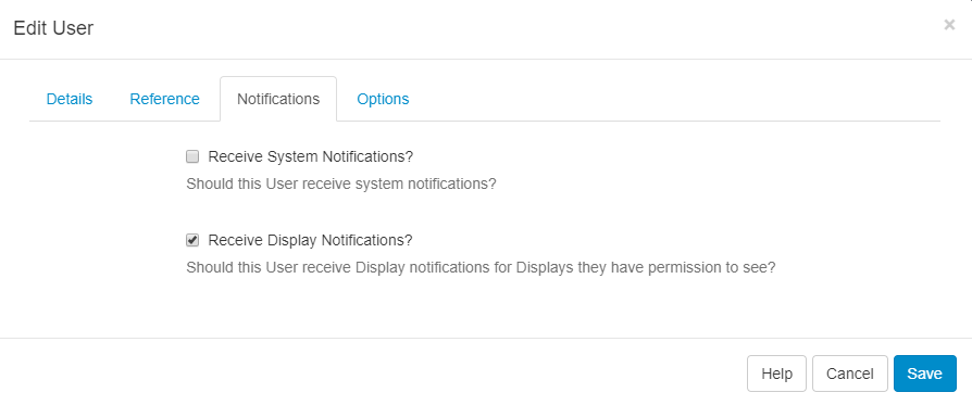 • Click on the Notifications tab and tick the box to Receive Display Notifications.