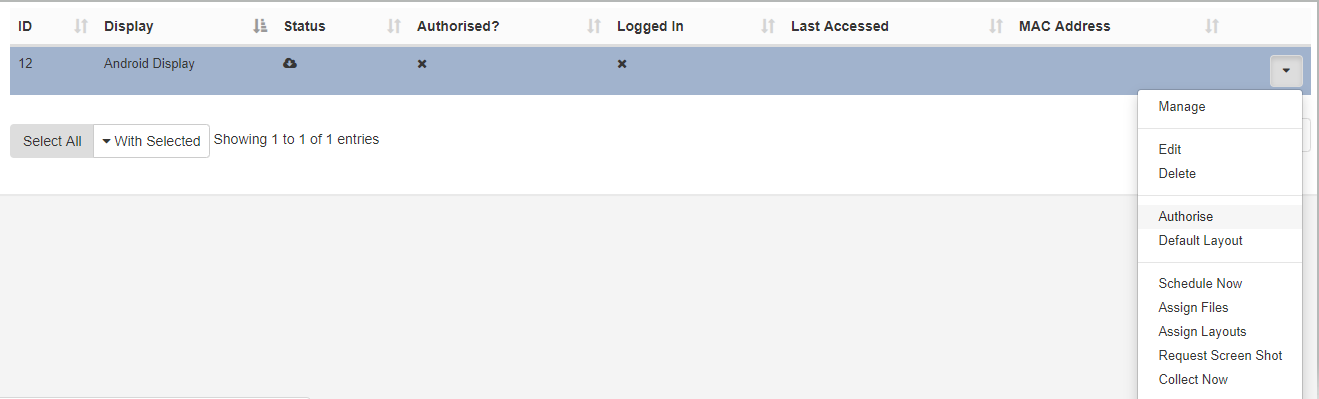 Assuming there are no errors with the communication between the CMS and the Player, the Display will be registered and awaiting authorisation as detailed in the Display Authorisation section below.