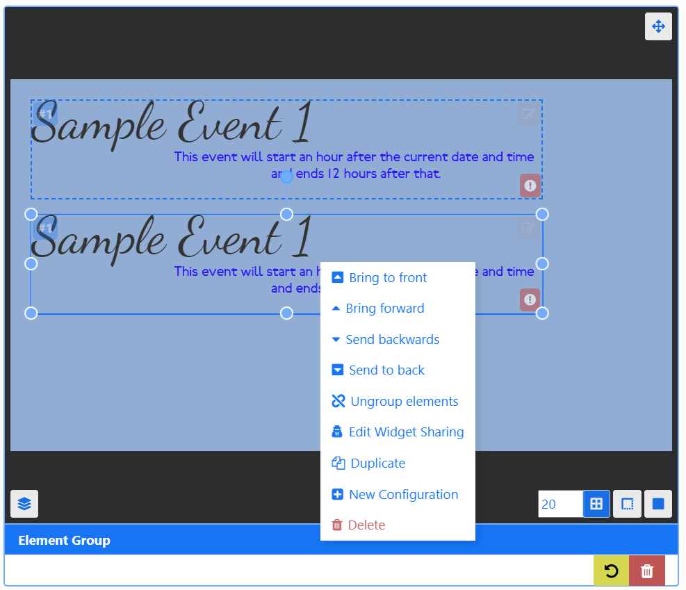Options set from the Configure tab will apply to all Elements added to the Layout of the same Widget type.