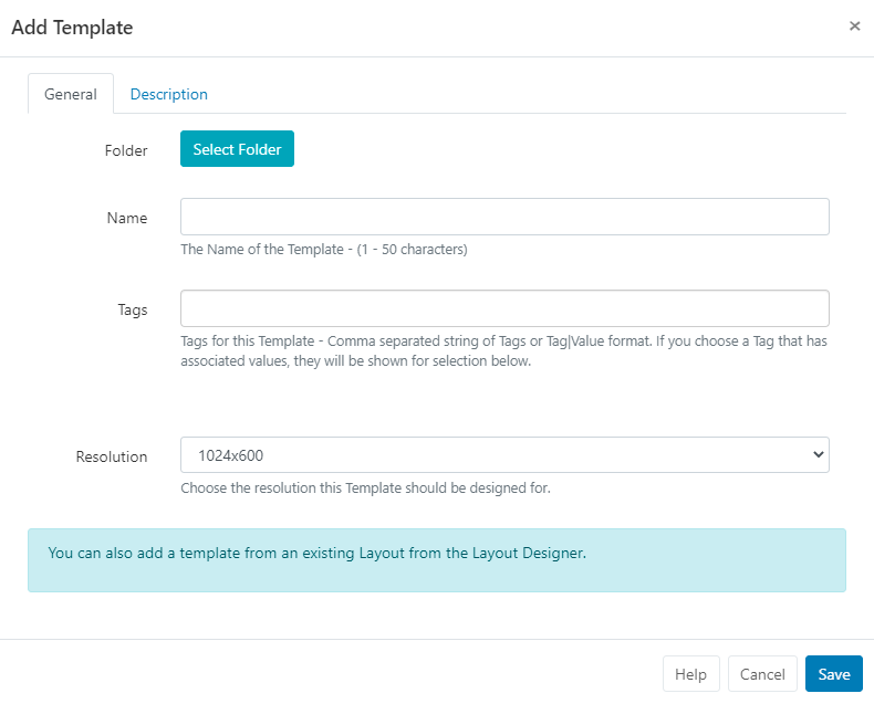 - Select the Add Template button and complete the form fields.