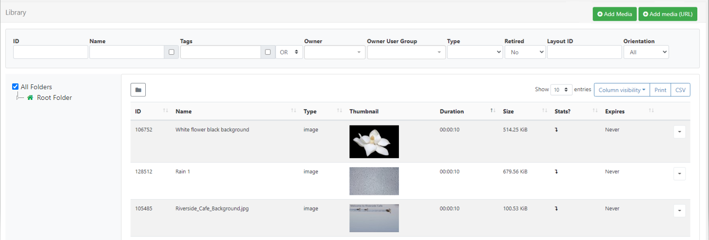 As the CMS is used and Layouts/Playlists and Media are added, over time the Library can become cluttered with old content that is no longer in use.
