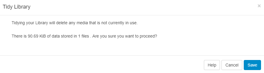 The Library can be tidied by a User or Super Administrator so that it is kept clean and small. Actions cannot be reversed so this must be used with caution.