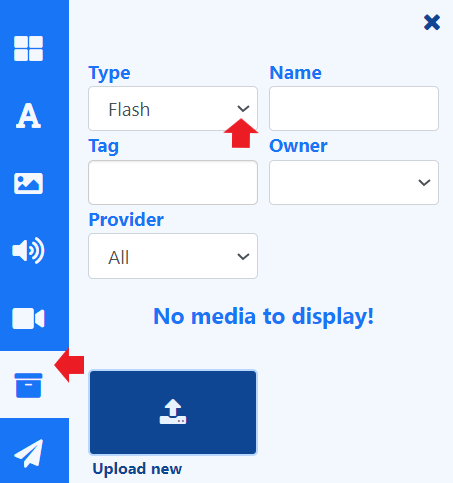 Using the ‘other media’ search, use the Type drop down to select Flash.